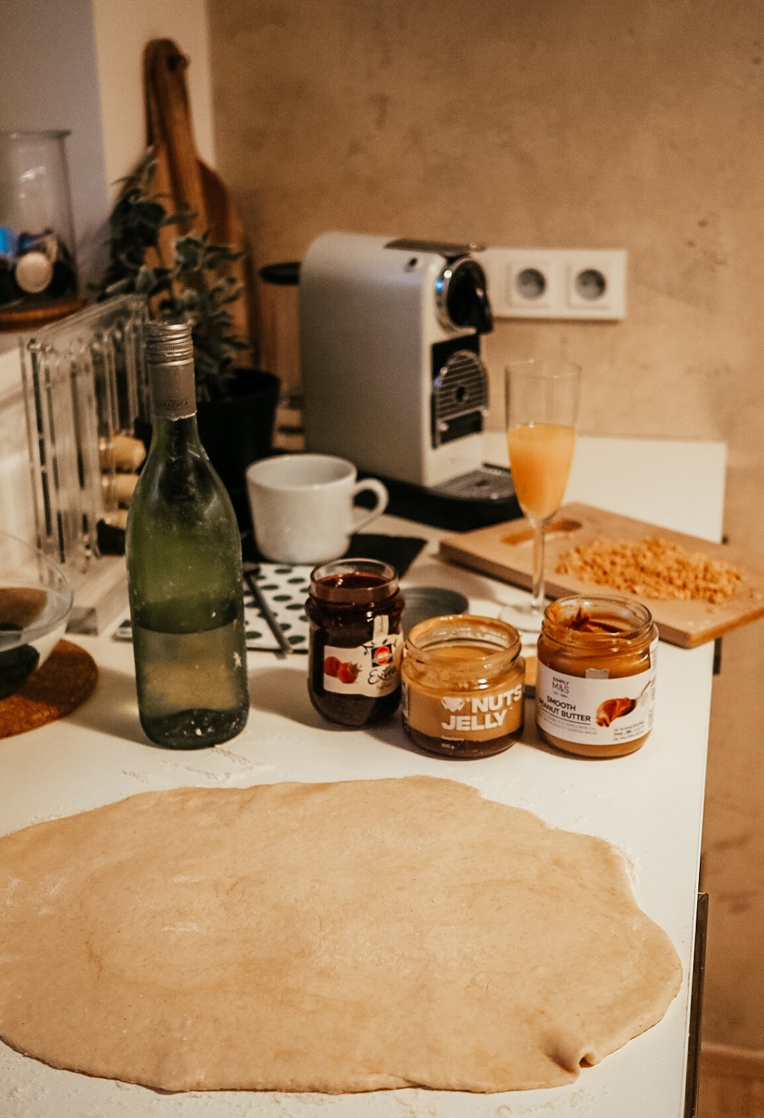 A vyšší dívčí – kynutý těsto. Válela jsem ho flaškou od vína, protože váleček doma FAKT NEMÁM. 😀