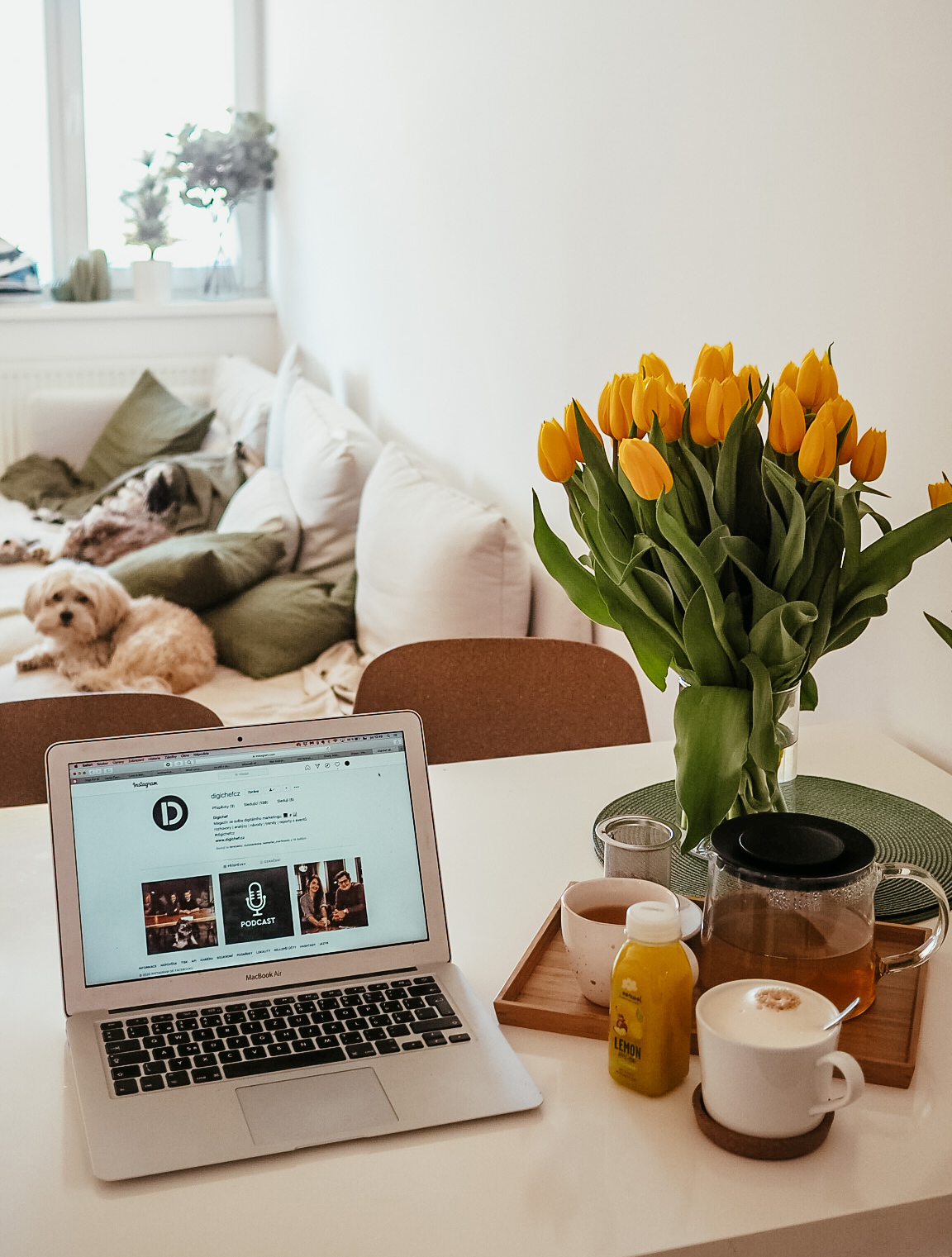 A homeoffice se mi s tou spoustou čerstvejch kytek užíval taky o dost víc.