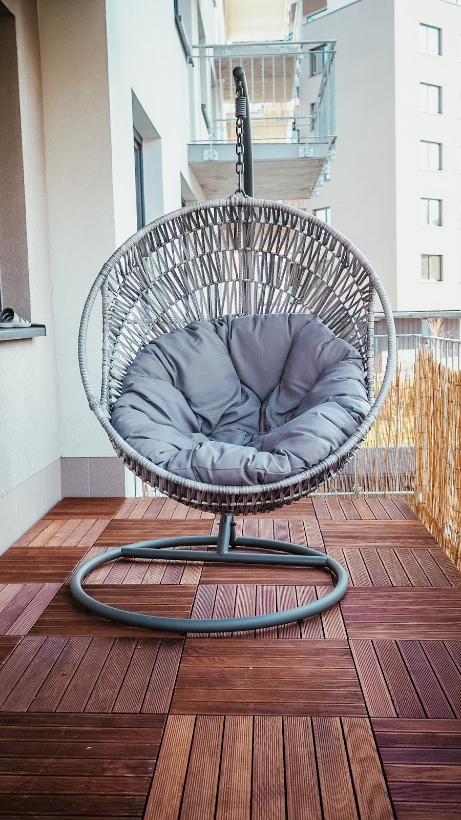 OdpovědětVymazatKrásné pokračování zútulňování bytu. Velikost balkonu je úžasná a perfektně jsi to zařídila. To houpací křeslo je parádní. Jinak za mě tam rozhodně chybí kytičky. Ty udělají balkon balkonem 🙂