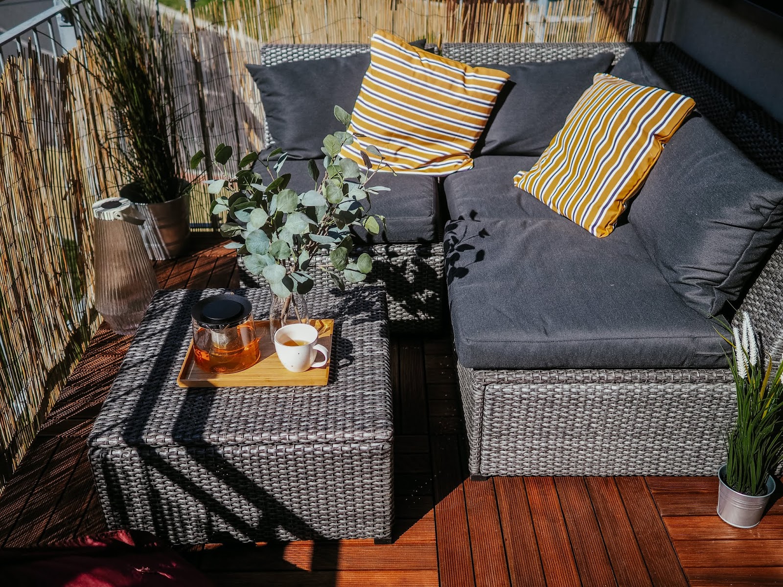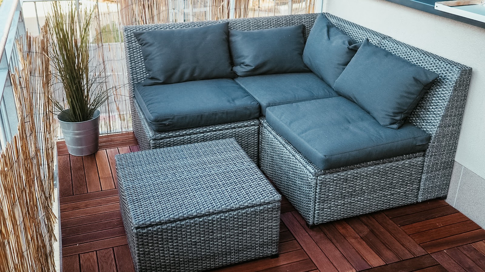 Rozhodně pěkný. Podlaha vypadá příjemně a fakt balkon zvedla. A máš fakt velký balkon, když se ti tam vejde takové poměně masivní sezení, křeslo a ještě řešíš nezařízený zbytek 🙂