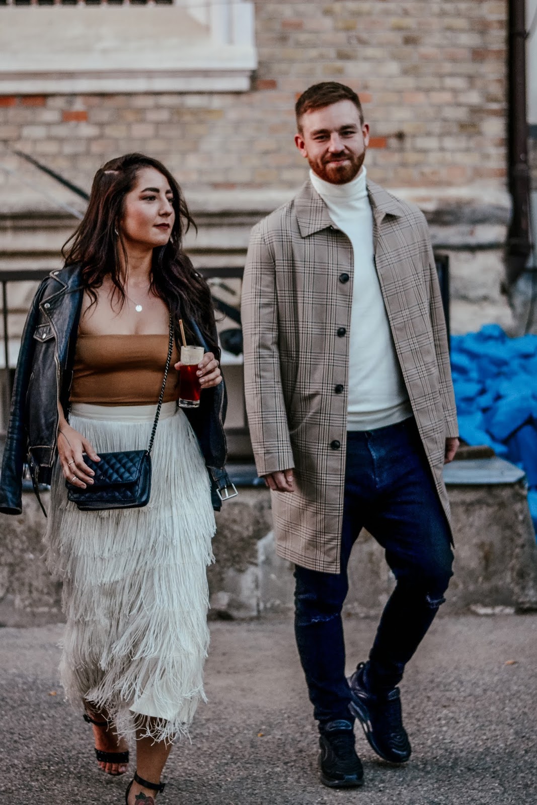 Outfit na třetí den jsem vymýšlela v ateliéru Herminy Khalaf Pogosyan, jejíž práci už dlouho s nadšením sleduju. V showroomu jsem si půjčila nádhernou sukni a doma ji pak doladila tak, abych se hodila ke kamarádovi, kterej mi dělal ten večer doprovod a byl na fashion weeku poprvé, takže mě i poprosil, abych mu v Zaře vybrala outfit. Ten jsem mu vybrala a pak se k němu sladila. Pochval jsme dostali nespočet, haha.