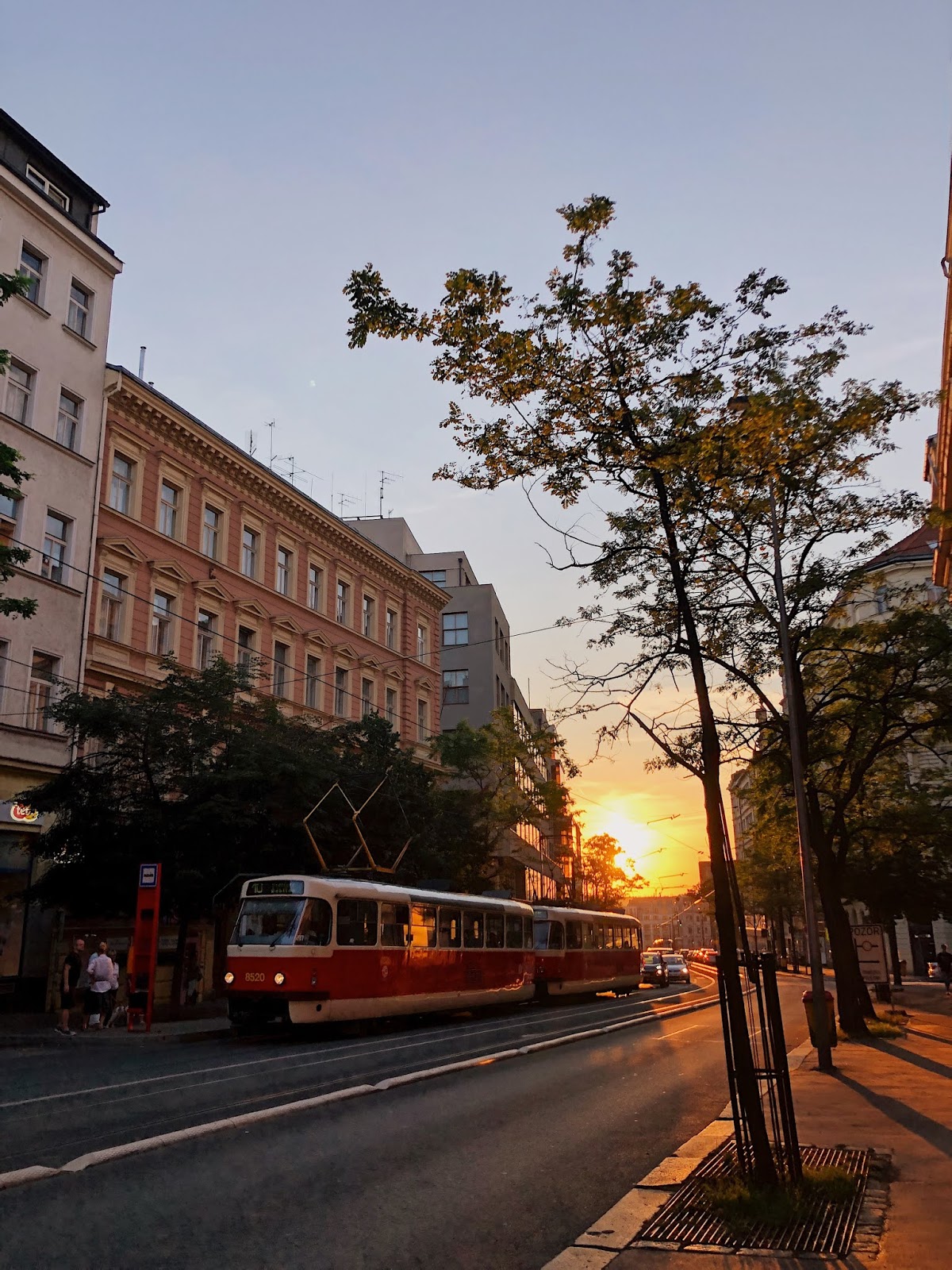 A procházka z Vinohrad do centra při západu. Nádherný. NÁD-HER-NÝ!