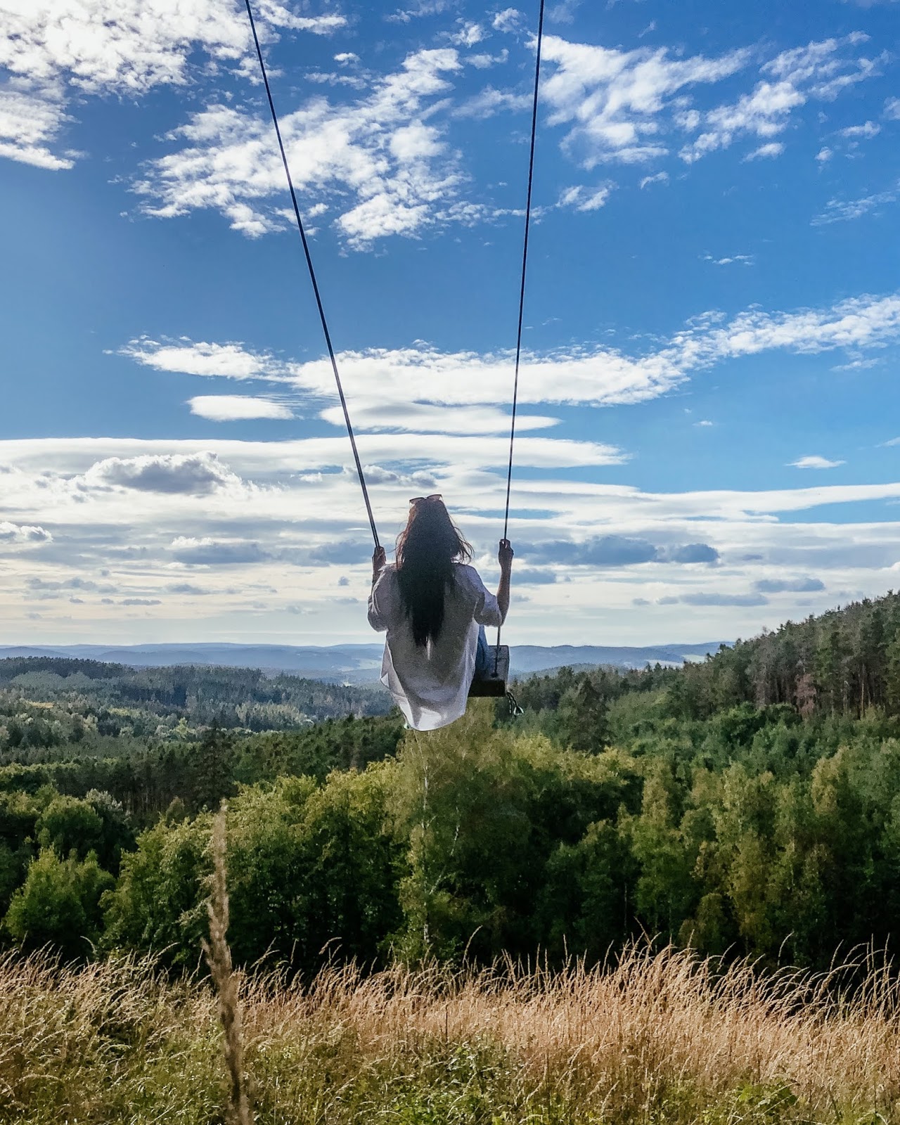 Celý léto chci někam na výlet a tak mě dojme i maličká rozhledna, na kterou stačí vyšlápnout pár schodů. Já jsem tak vděčnej člověk, achjo. 😀