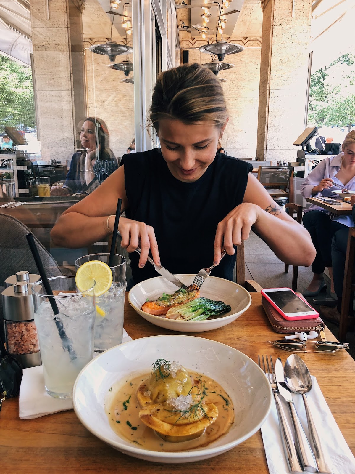 Čím byl tenhle brunch speciální? Byla jsem pozvaná do Artisanu, restaurace, která spadá pod hotel Marriott. Během prázdnin dělali servírované nedělní brunche o asi patnácti naprosto delikátních chodech. Když říkám, že jsem se nikdy tolik nepřejedla a nikdy nesnědla tolik naprosto geniální jídla, nepřeháním ani o kousek. Brečim z představy, už teď už se tam na něj jít nedá, protože přes zbytek roku maj koncept brunchů jinačí a ten teprve budu muset vyzkoušet, abych vám zas podala hlášení.