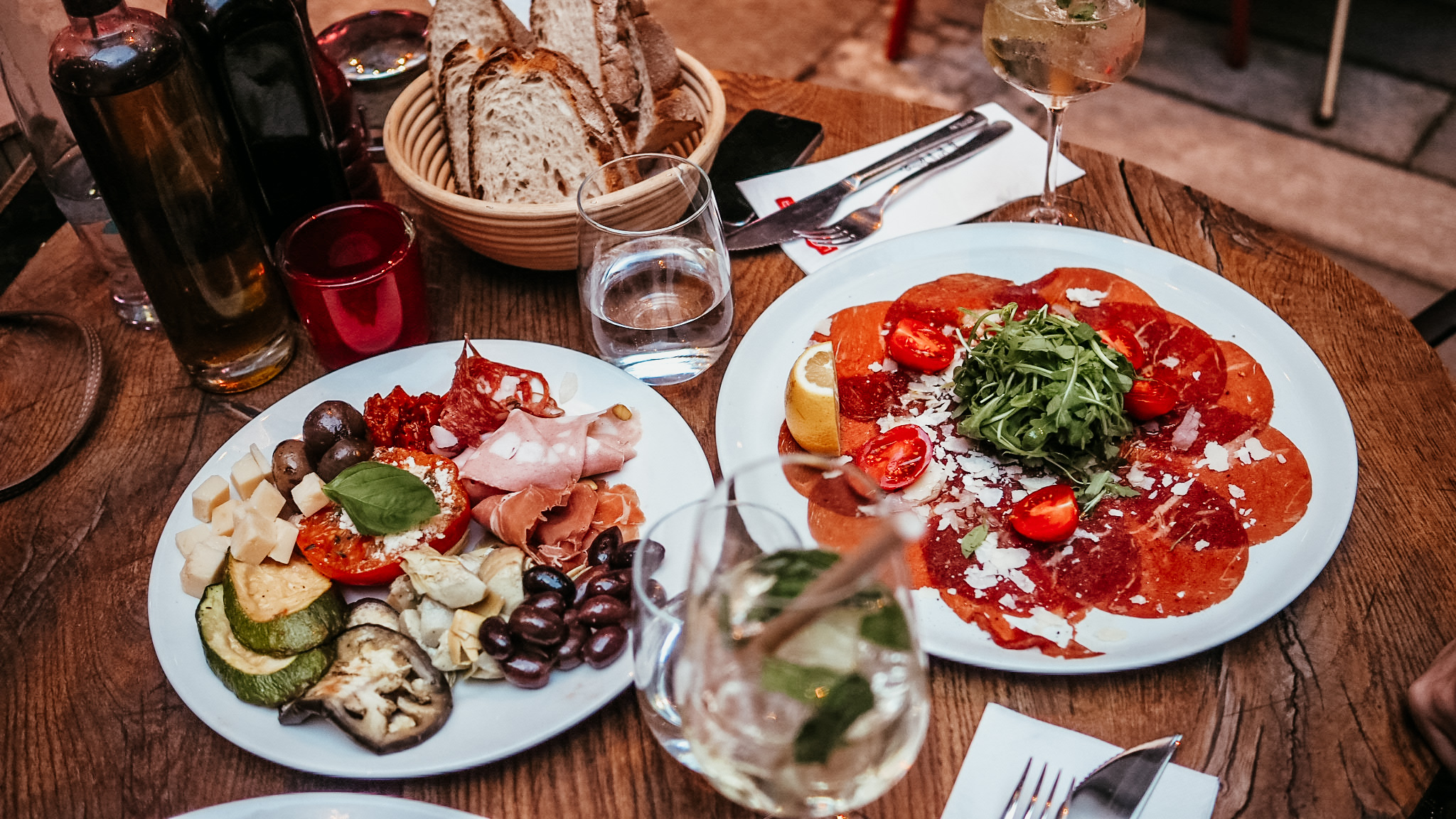 Tady o pozvání víc fancy – l’Osteria, výběr předkrmů, Hugo a živá hudba k tomu. Jo, tohle jsme si užily moc.