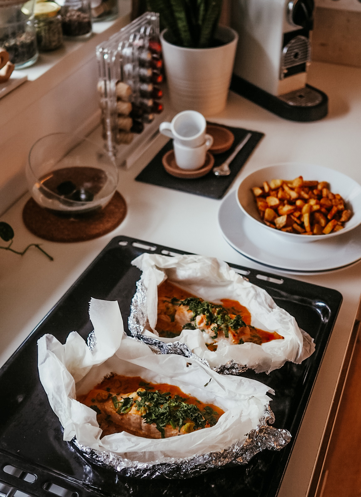 Zrovna já jsem ten typ, co je schopnej jíst každej den stejný jídlo, když jsou to moje oblíbený věci. Ke snídani vajíčka se slaninou, k obědu steak s bramborama a k večeři obloženej talíř. Zároveň ale miluju restaurace, takže když je svět v pořádku, jím často někde venku a doma si tak opravdu dělám pořád to stejný a nezvládne se mi to přejíst. Když jsem ale doma pořád a Wolt ke mě stále nejezdí, musím občas sáhnout po něčem neobvyklým, aby mě to jídlo bavilo. Třeba teď miluju ovesnou kaši s rozvařenejma švestkama, lososa na kari, zdravý sušenky a díky spolupráci s Yuzu jsem objevila svůj novej oblíbenej čaj. Pokud už teda nevíte co se sebou, projděte si svý oblíbený foodblogy, na Rohlíku si naklikejte nákup, ať nemusíte do tý zimy venku a zkoušejte a pochutnávejte si. Budete z toho mít radost už během vaření, natož potom, když se to povede a vy se budete moct poklepat po rameni a budete mít v zásobě další osvědčenou dobrotu, kterou můžete v budoucnu zapůsobit na kamarády / novýho kluka / rodiče / kohokoliv.