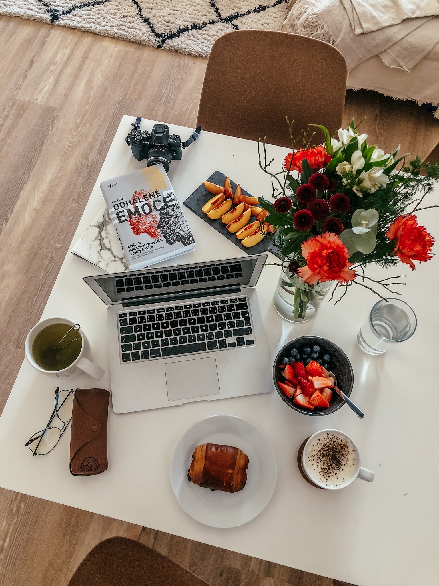 Homeoffice už je standard, kterej se dá jen vylepšovat a my s holkama stále vylepšujeme. Dobroty k práci, hodně kafe, kvalitní čaje, ovoce na uzobávání, čerstvý kytky a vzájemná motivace a pochvaly. Ono to pak jde všechno mnohem lépe od ruky.