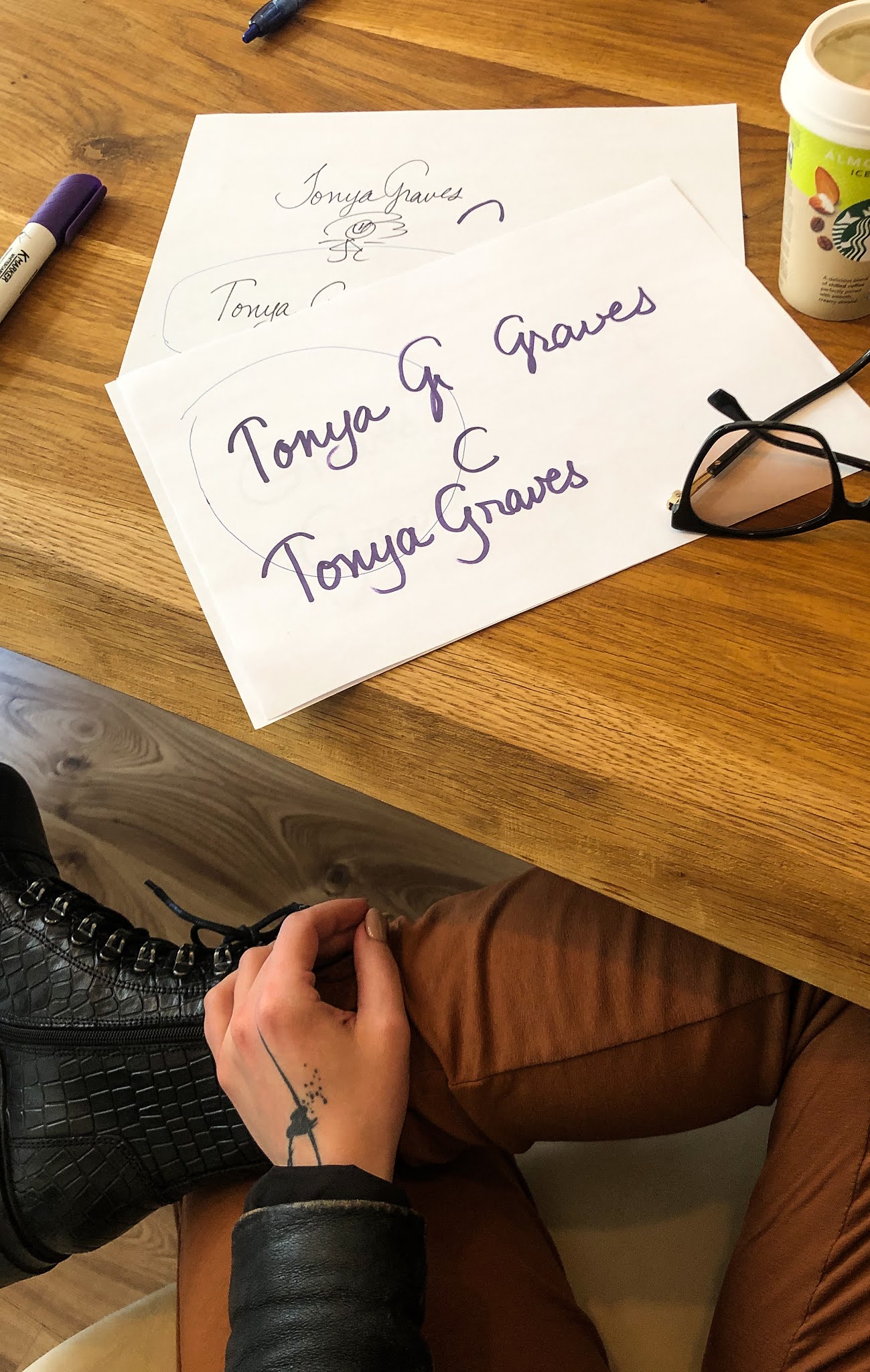 Další super meeting byl s Tonyou Graves, která miluje dupačky a tak společně vymýšlíme její vlastní model.