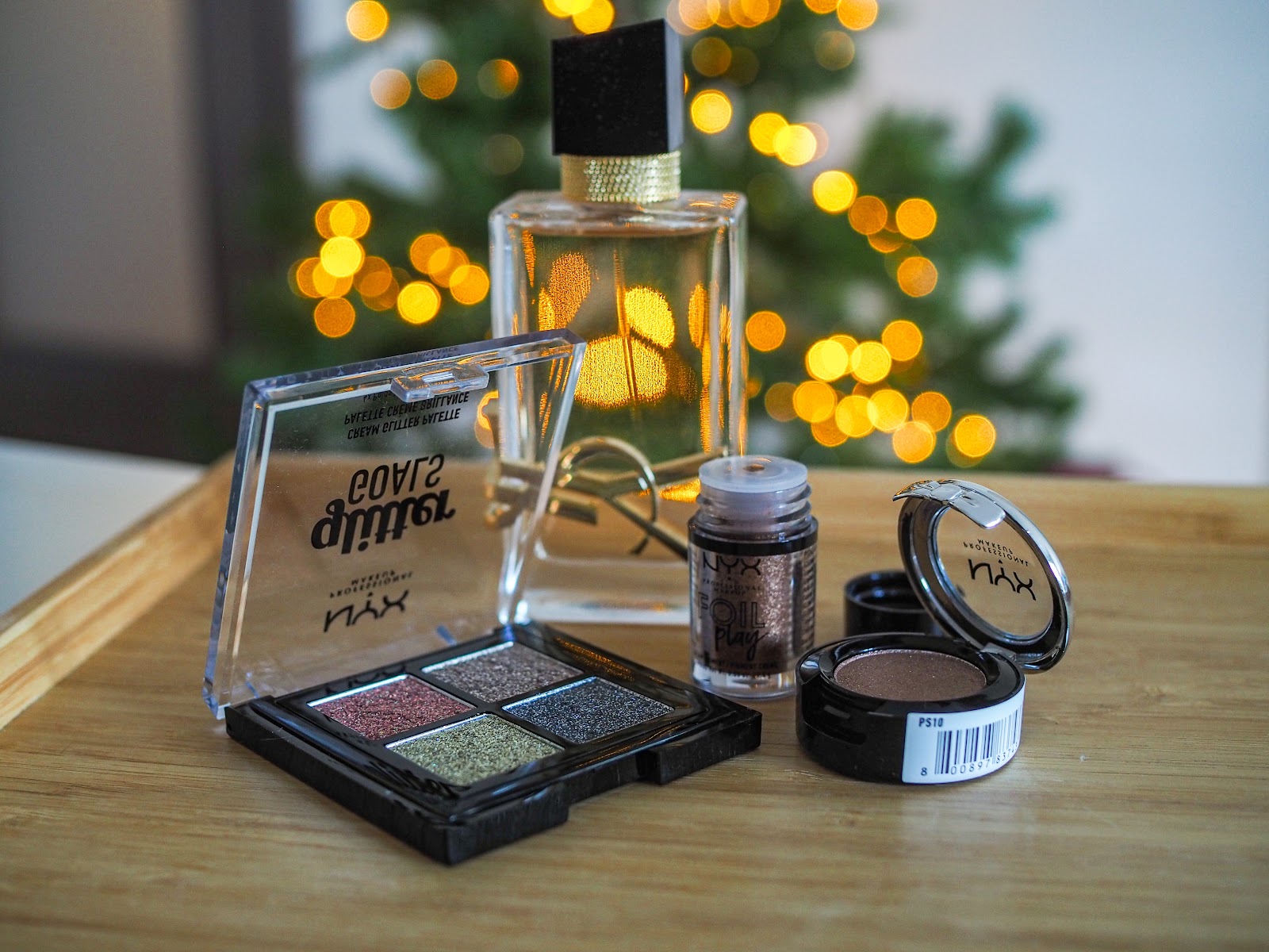 Já si kvůli tomu, jak moc se na letošní vánoce doma těším – loni jsem kvůli covidu neviděla rodiče – objednala dvoje hodně třpytivý stíny a ještě samotný třpytky na obličej, abych byla vybavená i na případný silvestrovský oslavy s holkama nebo domácí vánoční večírky. A samozřejmě jsem to chtěla dopředu vyzkoušet, abych věděla, jakej look kdy zvolit.