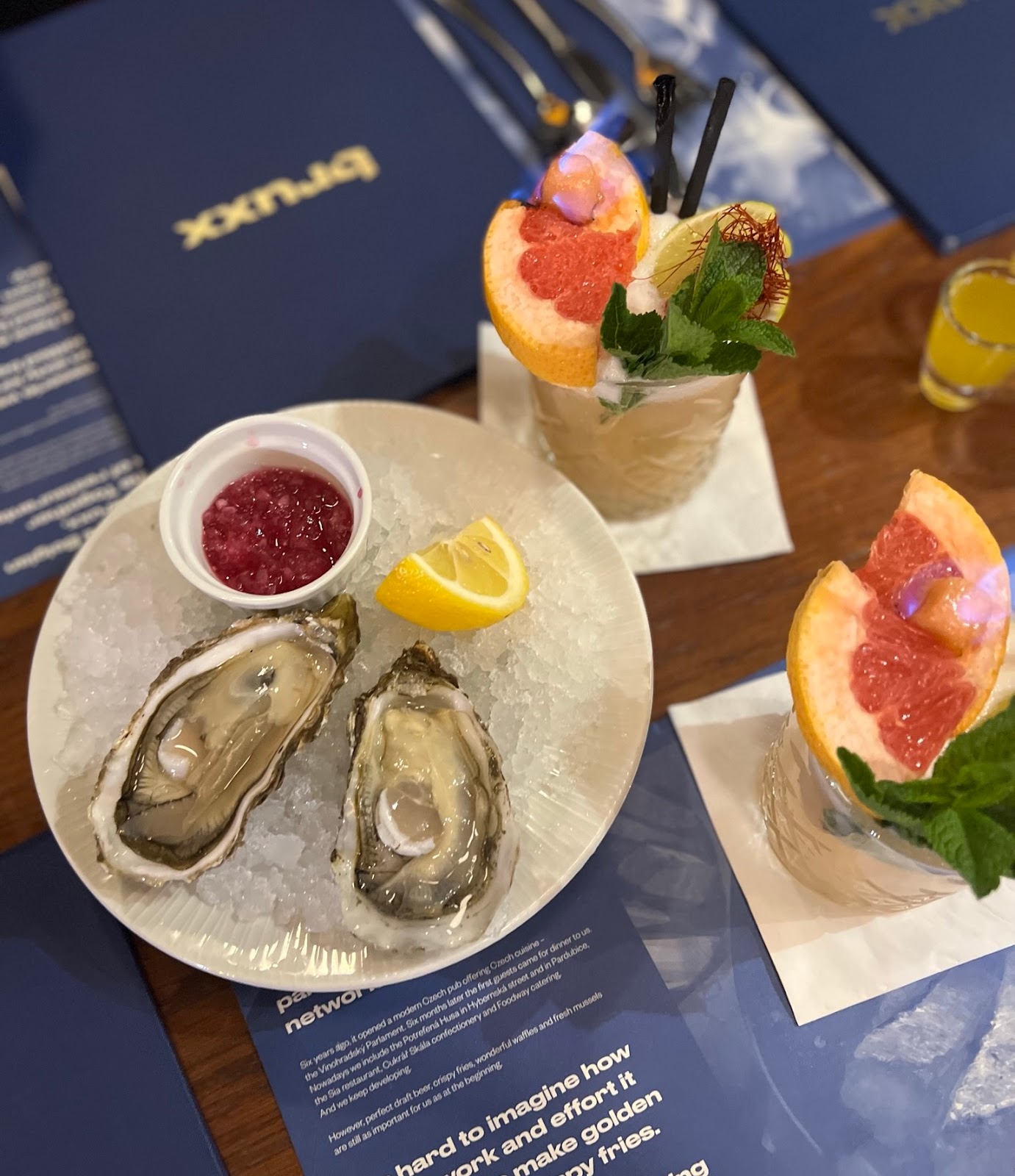 V Bruxxu ochutnejte grepovej drink, co hoří a ústřice k tomu, dokonalá kombinace, na kterou bych chodila pořád, kdybych byla milionář.